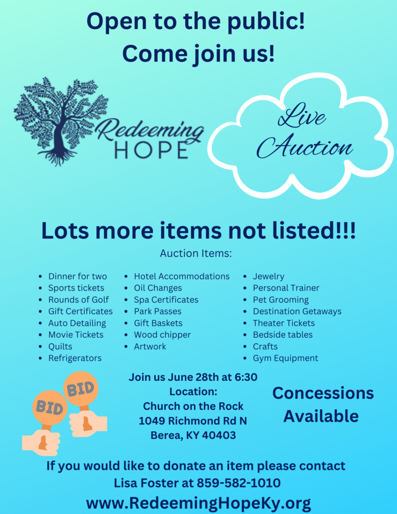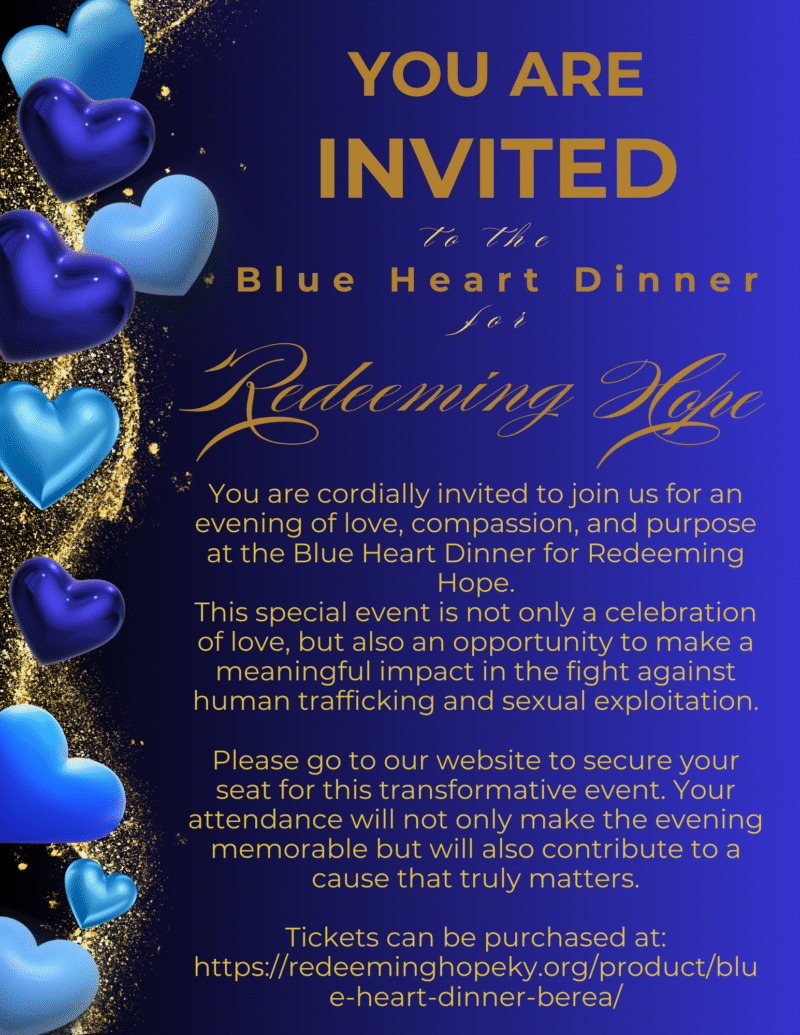 Be part of a night filled with hope, compassion, and community impact. Your attendance directly supports Redeeming Hope’s efforts to provide safe housing, trauma-informed care, and renewed opportunities for teenage girls overcoming exploitation.